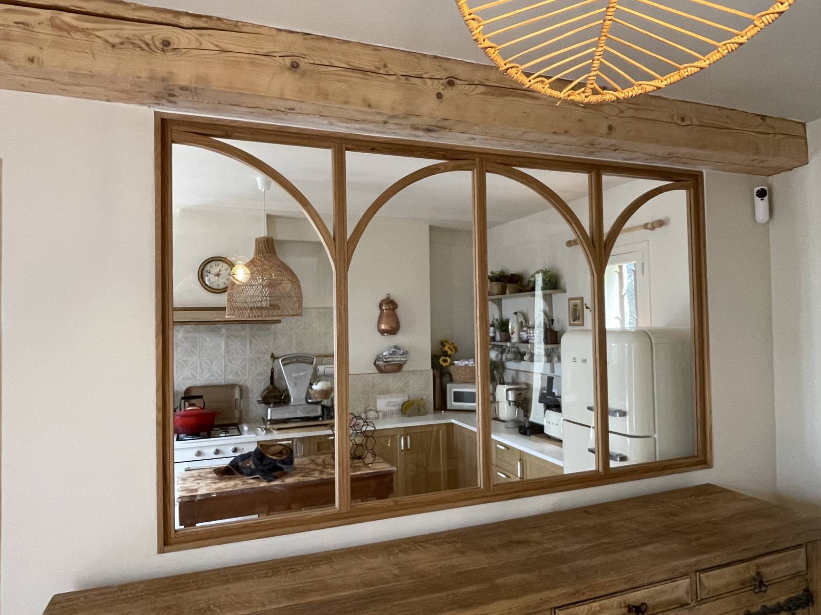 Cette fabrication d'une verrière en chêne massif sur mesure avec arrondi pour une villa à Merindol dans le Luberon devient un élément central de la pièce de vie, capable d’apporter lumière, structure et personnalité à l’espace.